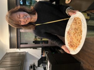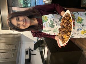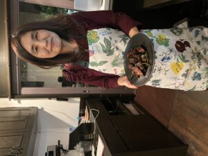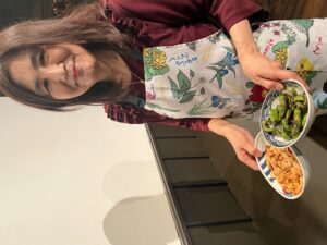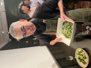 柏原さん、みなさんがいらっしゃる前にさらっと「ブロッコリーとイカの中華風炒め」をさらに「春菊としらすのサラダ」、最近たずねた淡路島から「淡路島の玉ねぎのオーブン焼き」、「ロスティ」、ご自身も解体に参加した「西伊豆の猪シキンボウのロースト」と今回も盛りだくさんでした。
