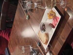 ・鹿ハツのアヒージョ、イノシシのソーセージ、きょんの盛り合わせ